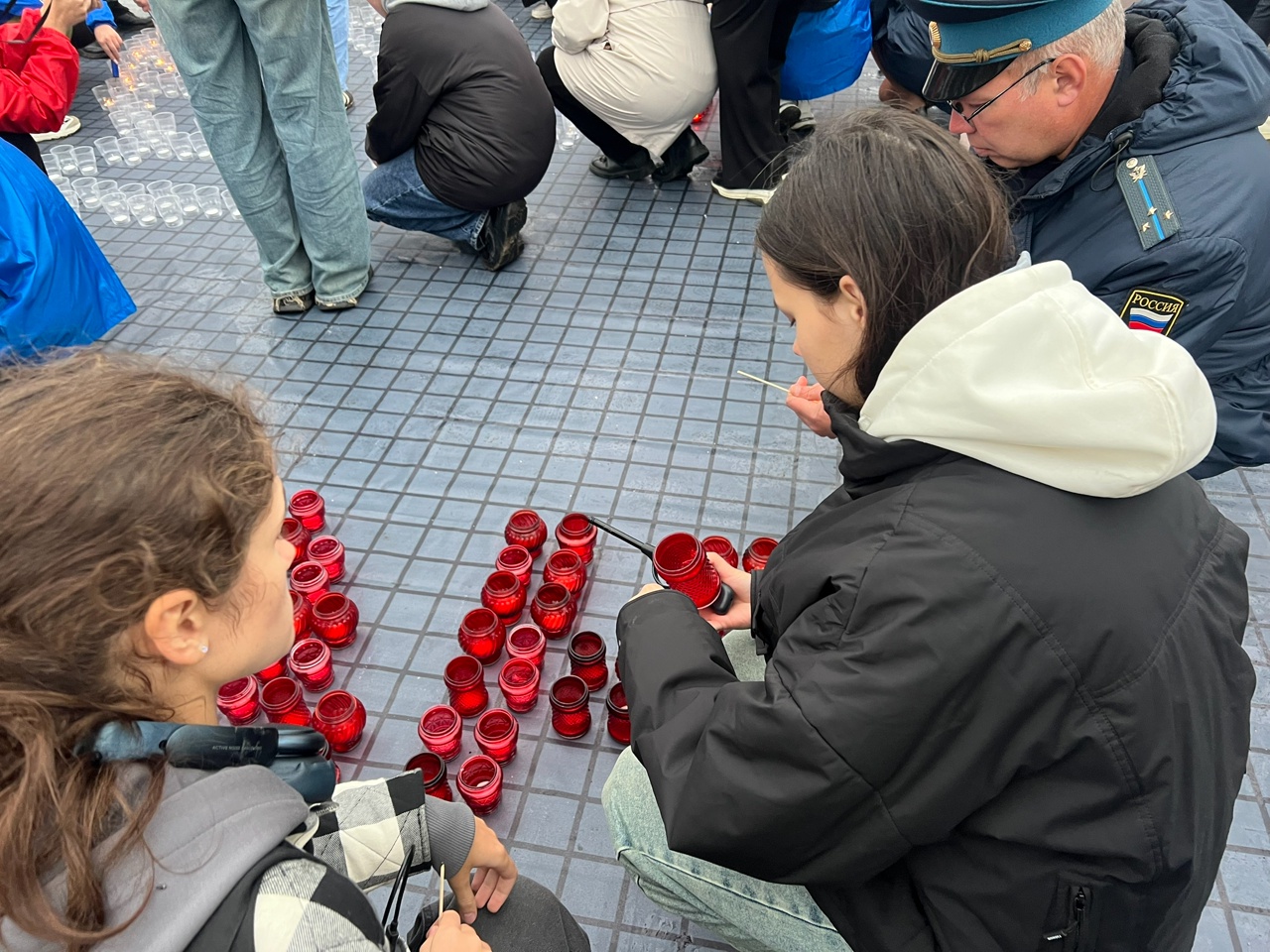 Сегодня студенты нашего колледжа вместе с советником директора по воспитательной работе присоединились к всероссийской акции добровольцев движения "Волонтёры Победы" Кировской области. В рамках Дня солидарности в борьбе с терроризмом участники выложили фигуру голубя из свечей с надписью "Беслан", символизируя скорбь и надежду.Акция посвящена трагическим событиям сентября 2004 года в городе Беслан, ставшим символом жестокости терроризма и единства российского народа в преодолении последствий трагедии.Присутствие министра молодежной политики Кировской области Александры Васильевны Плосконосовой придало мероприятию особый статус, подчеркнув значение формирования активной гражданской позиции молодежи региона.Это событие стало важной частью воспитательного процесса в колледже, направленного на формирование уважительного отношения к прошлому и готовности защищать мирное небо над головой.