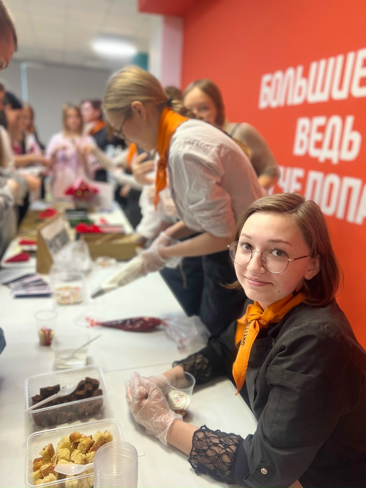 Рассказали школьникам про профессии общественного питания и торговли, провели два увлекательных мастер класса по приготовлению десерта "Трайфл" и изготовлению цветов из конфет.