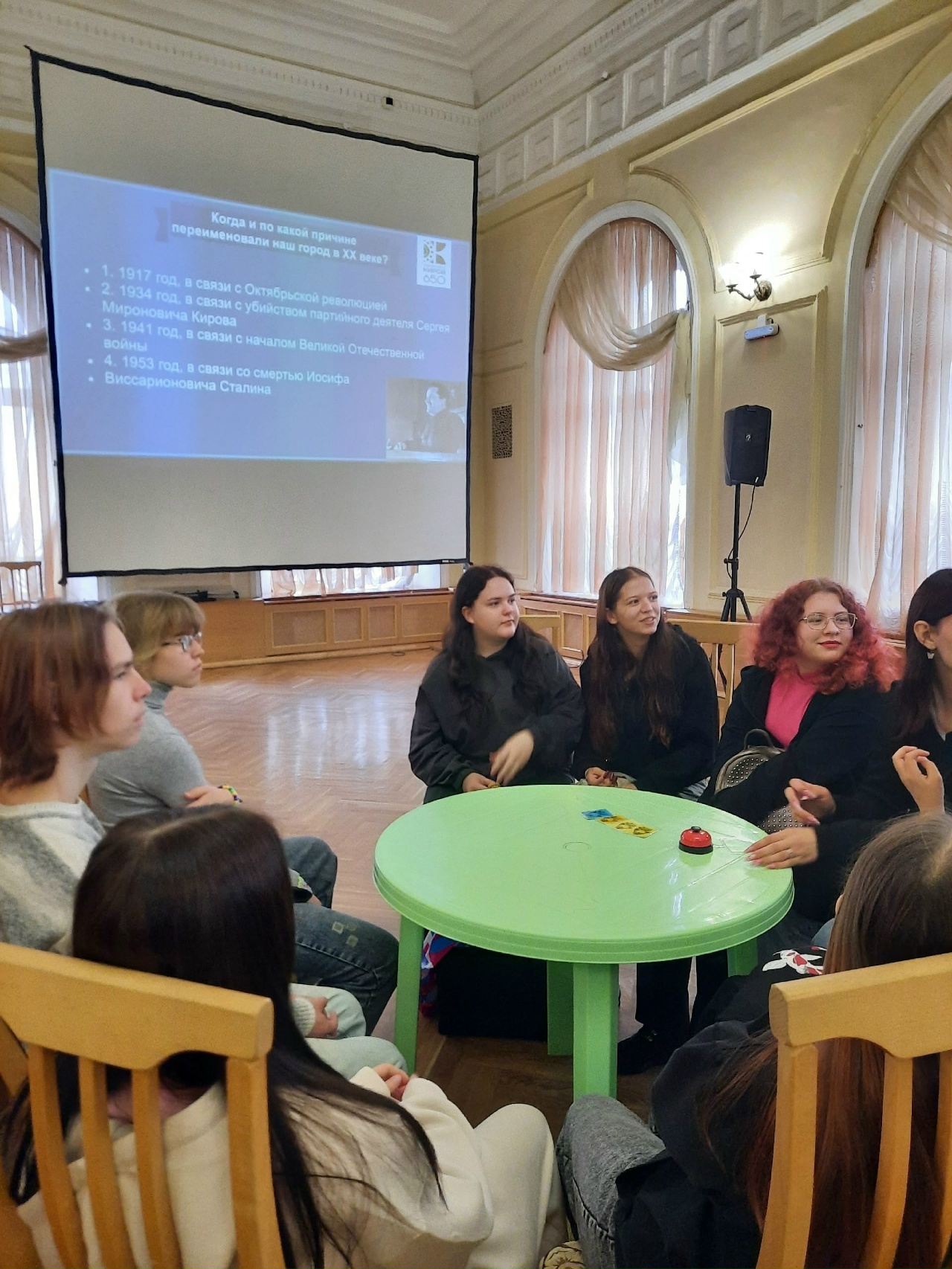 22.09.2025 г.под руководством преподавателя Сергеевой Людмилы Петровны студенты колледжа, групп 1 курса: 12-о и 16-о стали участниками краеведческой квест- игры " Из глубины веков: Вятка - 650". Ребята посмотрели фильм об историческом прошлом родного края, отвечали на вопросы, связанные с изучением культуры Вятки, прошлого и настоящего своей "малой Родины". Игра способствовала привитию любви к родному краю.