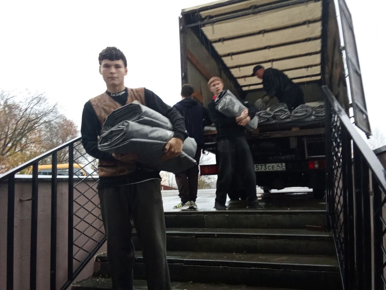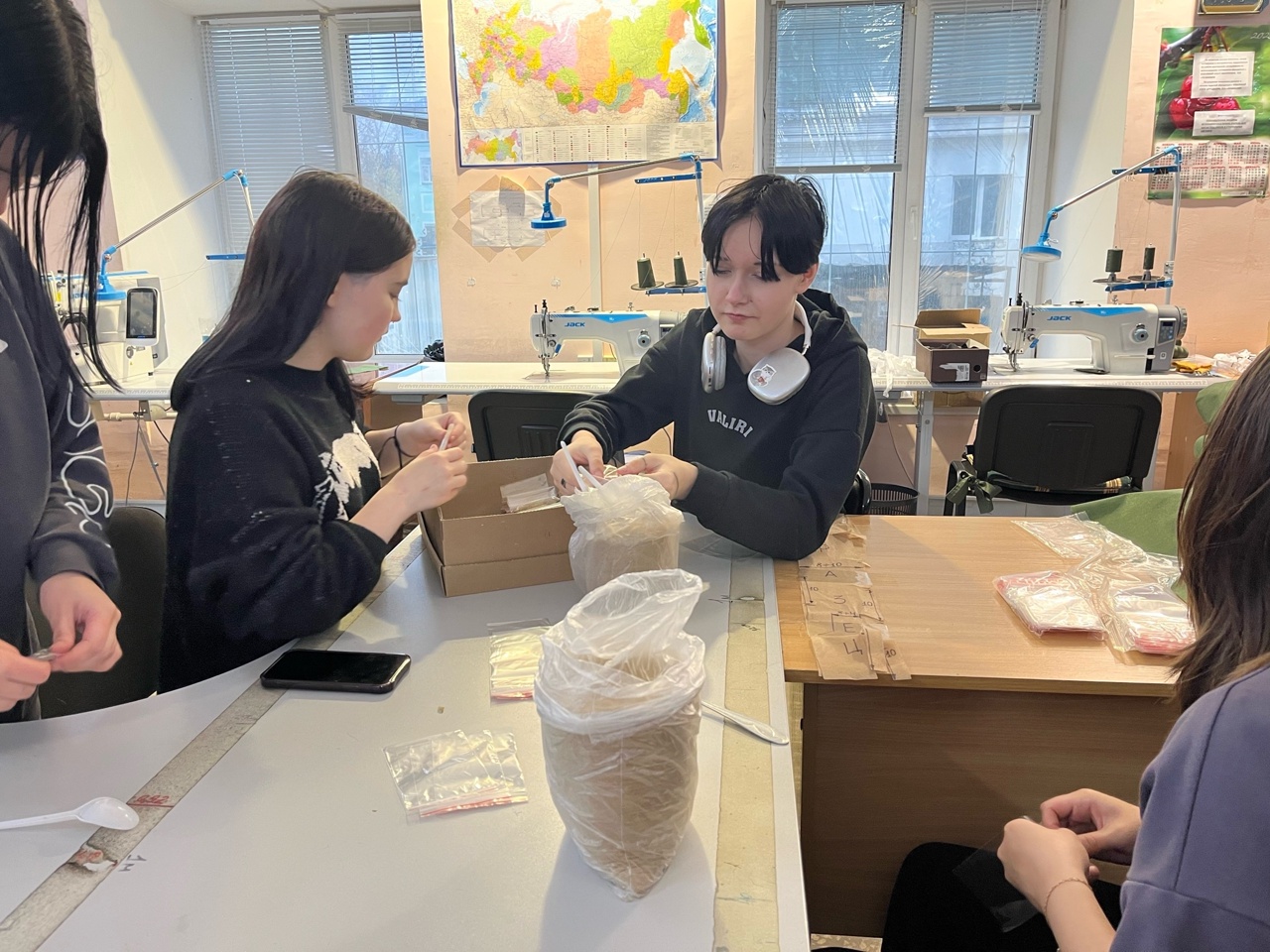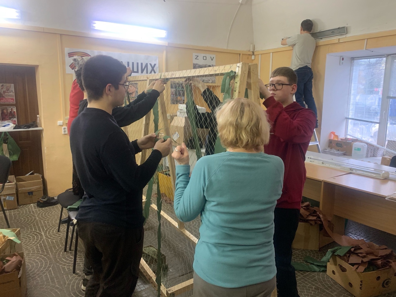 14 октября студенты 17о группы посетили фонд «ЗАВятку». Мальчики помогли с разгрузкой тентов от известного кировского завода. Эта продукция особо ценится бойцами при строительстве блиндажей. Тенты большие по размеру, прочные, хорошая прослойка между накатом и землей.Девочки разделились на две группы. Первая группа занималась плетением маскировочных сетей под руководством опытных волонтеров фонда. Именно этим занимаются многие волонтеры на протяжении более двух лет. Вторая группа раскладывала по пакетикам освященную землю, привезённую из храма города Яранска. Пакетики с родной землицей солдаты будут хранить у сердца. Руководство фонда выразило благодарность нашим студентам за помощь