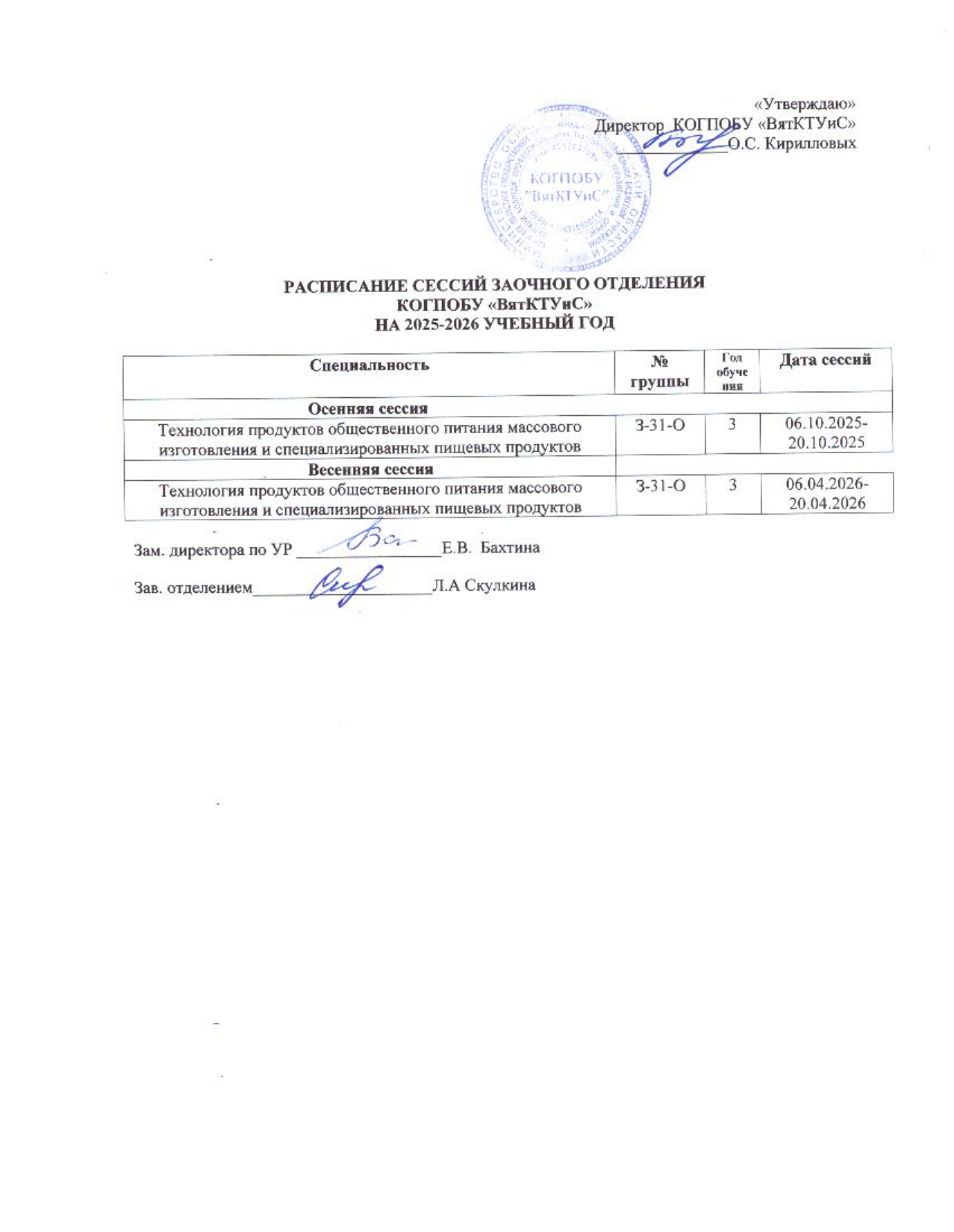 РАСПИСАНИЕ СЕССИЙ ЗАОЧНОГО ОТДЕЛЕНИЯ