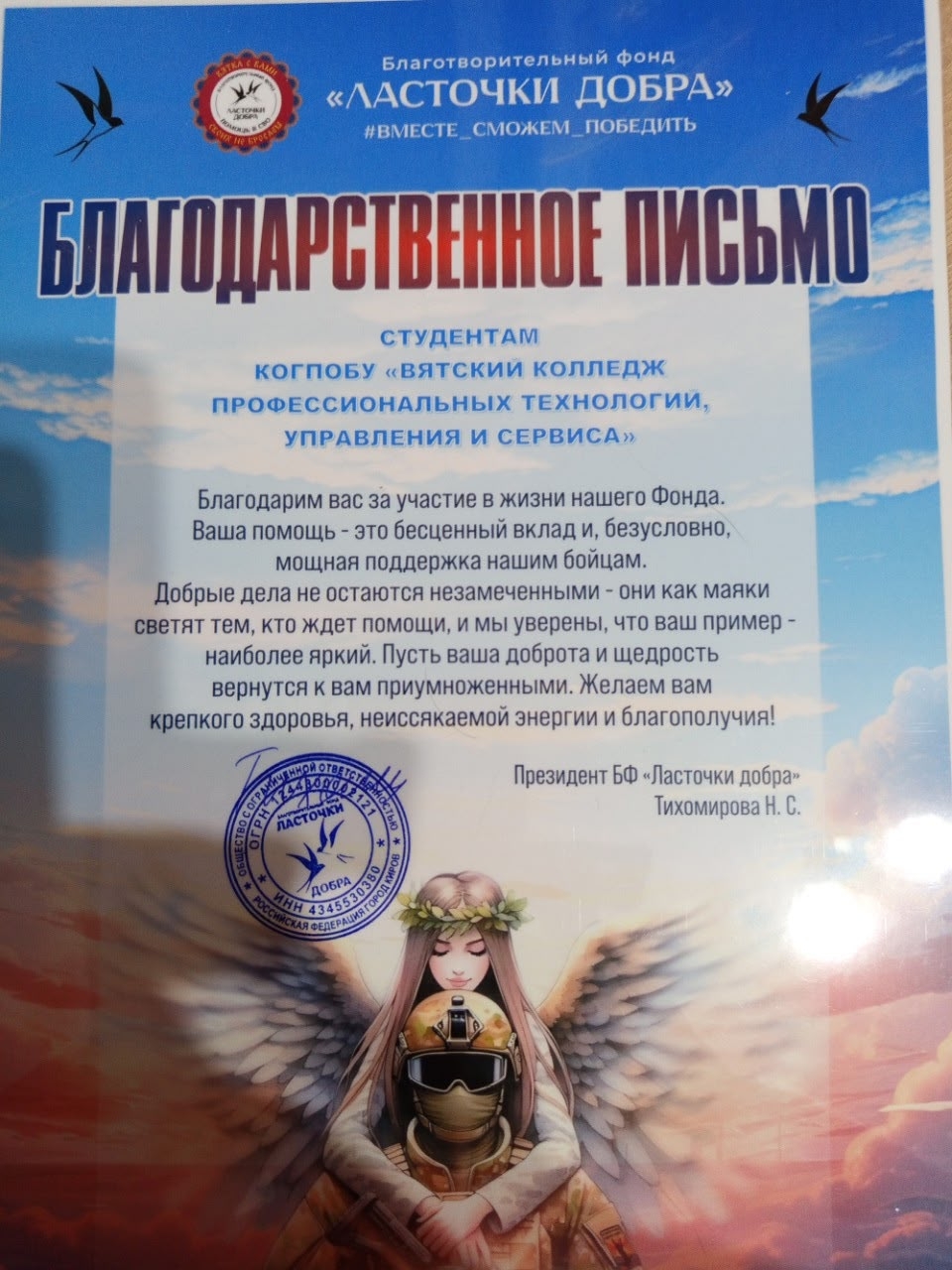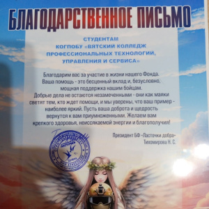 Помощь наших студентов также была высоко оценена руководством Фонда и волонтерскому отряду были вручены Благодарственные письма. Помогаем дальше! Наша помощь важна и нужна!