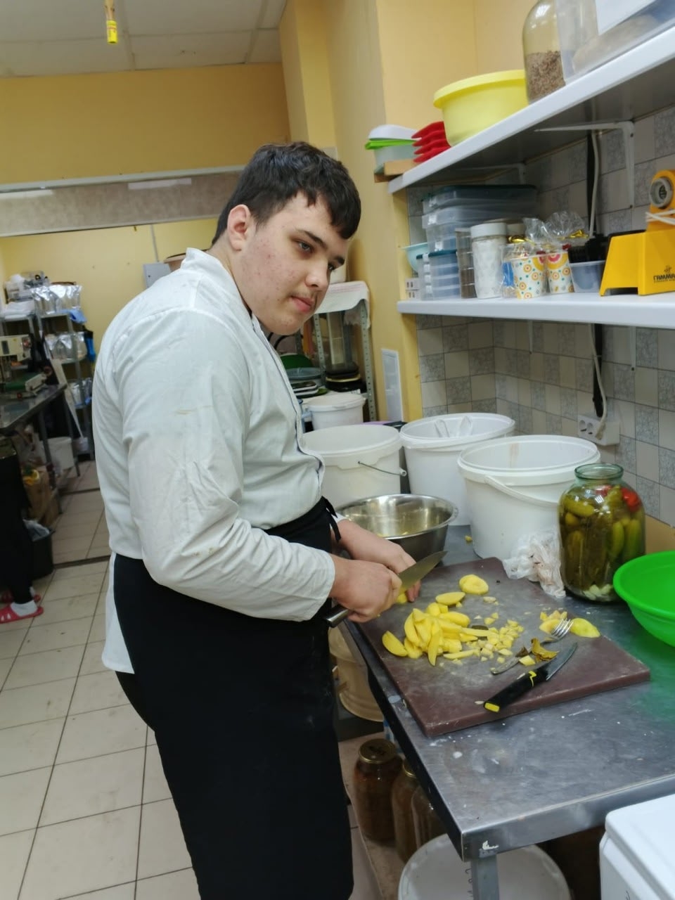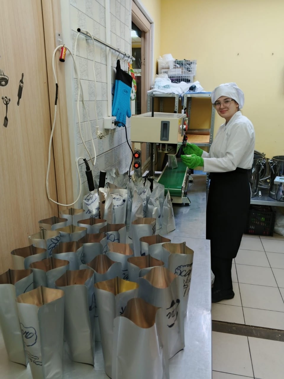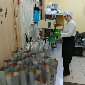 Ребята делали заготовки, работали с полуфабрикатами, собирали в пакетики блюда, запаивали их и отправляли на автоклав.