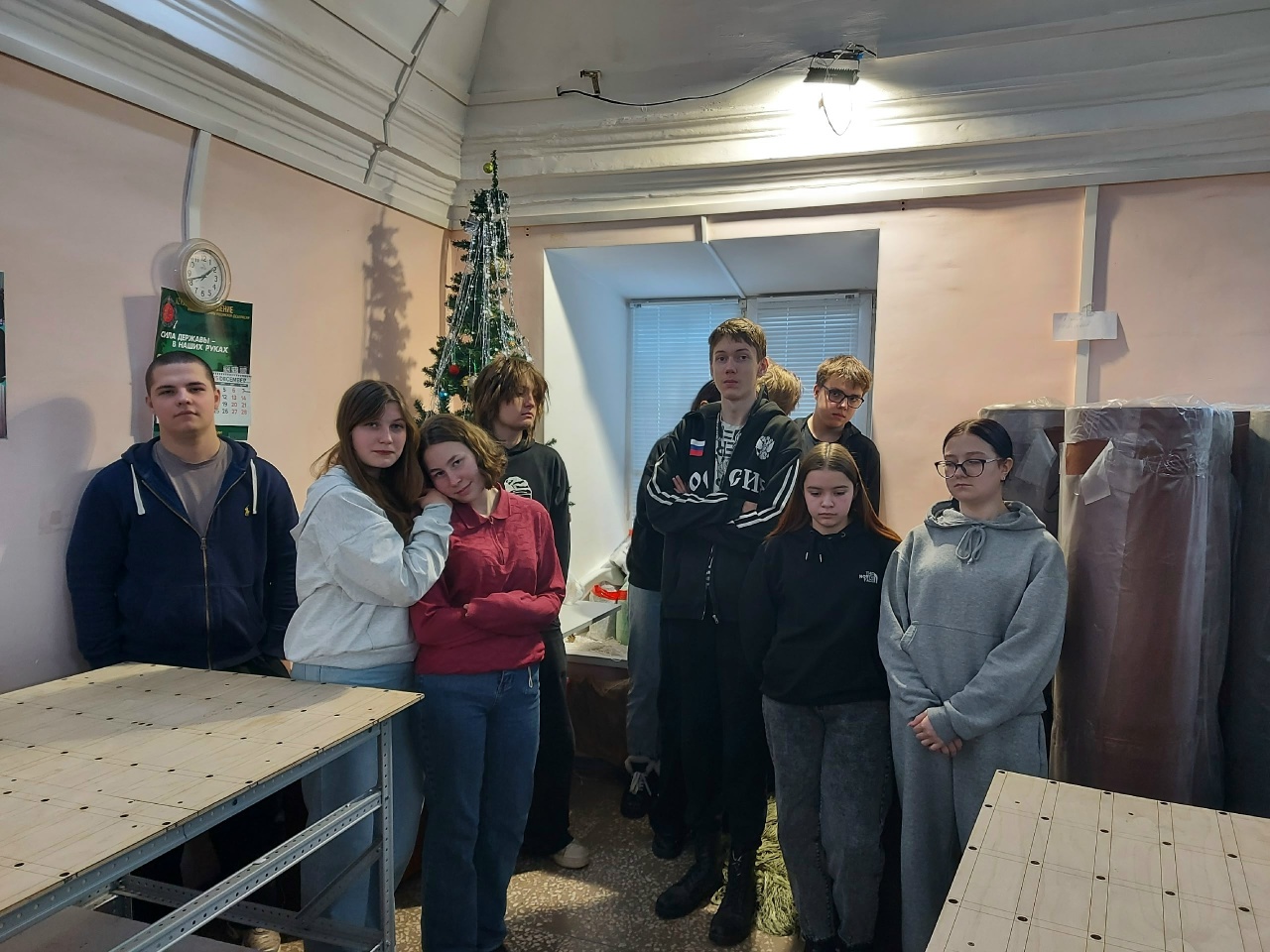 На занятиях обучающихся проводили по складу, познакомили с продукцией, отправляемой на фронт. Затем волонтёры проявили блиндажные свечи,сухие души.А также рассказали и проявления,как отшивают в цехе носилки-волокуши и для чего они нужны на войне.