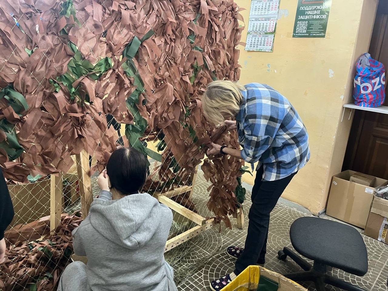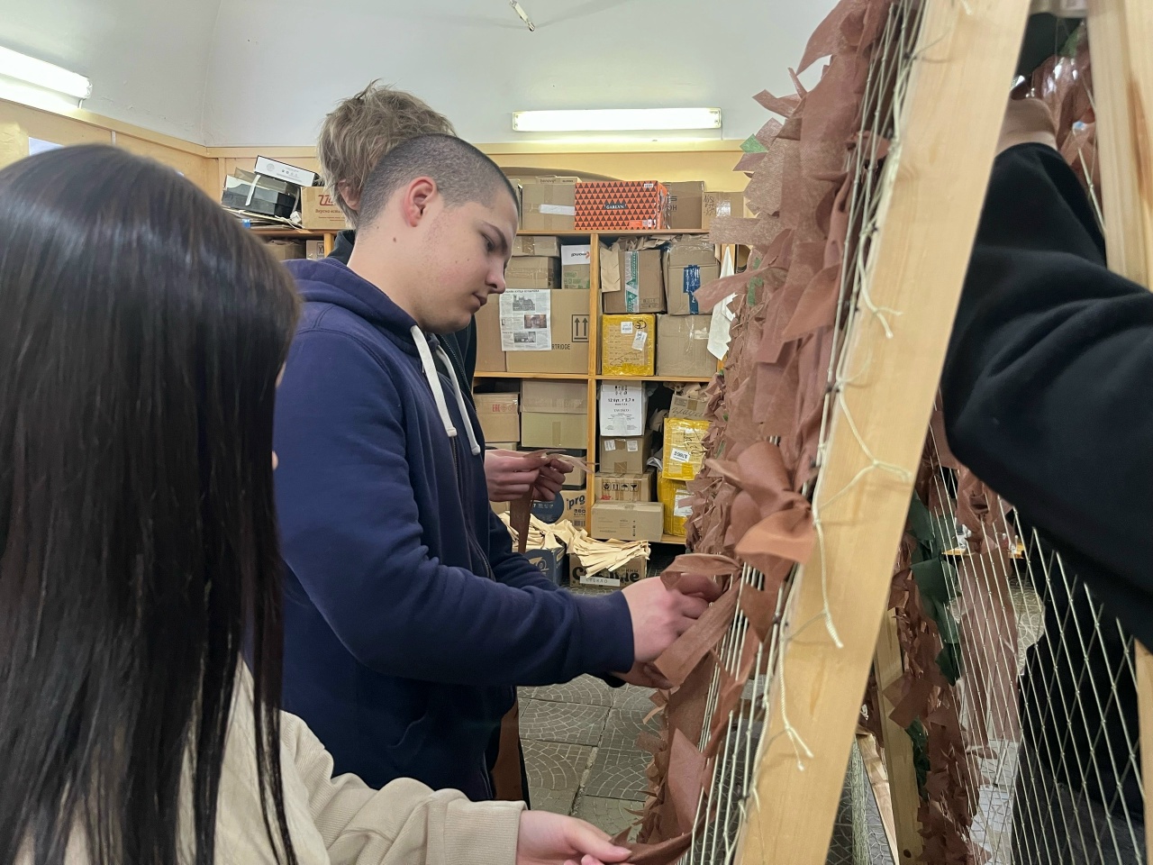 16 декабря студенты 16-о группы посетили фонд «ЗА ВЯТКУ».Обычно мальчики организовали фонд в погрузке продукции на фронт,но на тот момент,когда мы пришли, этой работы не было.Поэтому и мальчики, и девочки разделились на две группы и занимались плетением маскировочных сетей под руководством опытных волонтеров фонда. Именно этим занимаются многие волонтеры на протяжении более двух лет. Юноши не уступили девушкам и отлично справились с поставленной задачей.