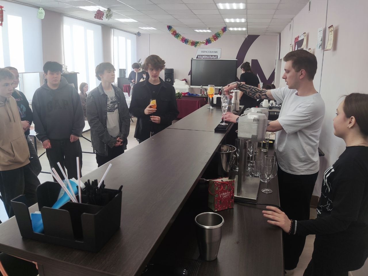 Студентам была предоставлена уникальная возможность познакомиться с ведущими представителями ресторанного бизнеса. Бар-менеджер ресторана премиум-класса Si, mare Георгий Русаков провел познавательный мастер-класс по приготовлению фирменных безалкогольных коктейлей заведения.Участники мероприятия получили ценные знания и практические навыки работы в сфере гостеприимства.